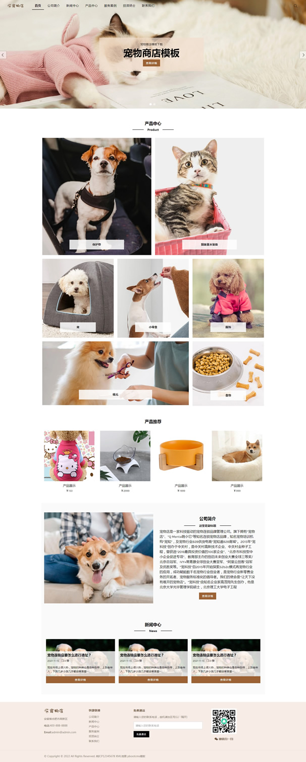 宠物门店pbootcms自适应网站模板,基于pbootcms内核UTF制作自适应结构,代码精简,适合SEO,装后即用。