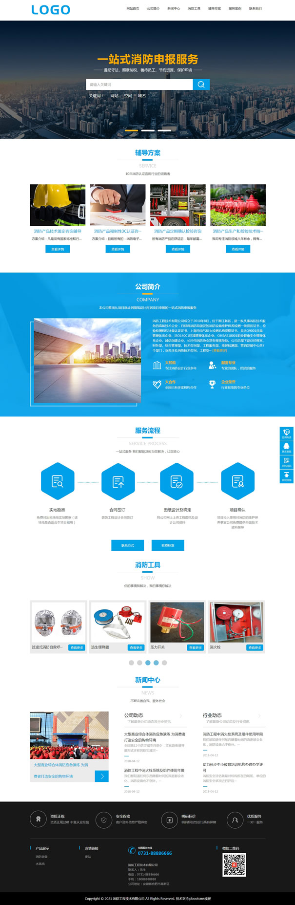 pbootcms消防工程(PC+WAP)网站模板,pbootcms内核开发的一套企业网站模板,安装后和演示站一样,模板简洁大气,PC+WAP结构。兼容电脑、平板、手机等移动设备。