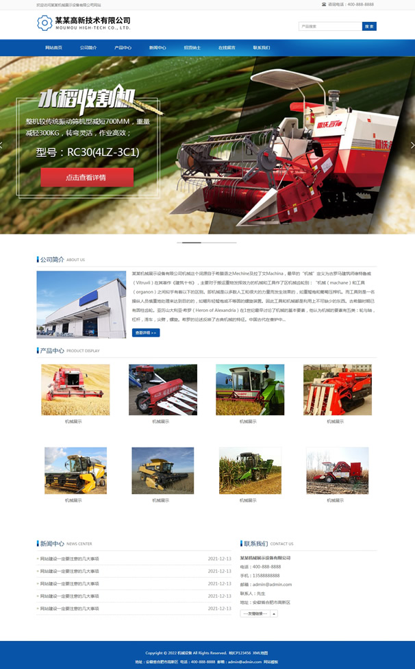 农业机械设备类网站pbootcms模板,pbootcms内核开发的一套企业网站模板,安装后和演示站一样,模板简洁大气,自适应结构。兼容电脑、平板、手机等移动设备。