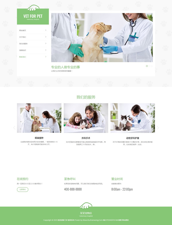 宠物门诊医院pbootcms自适应网站模板,pbootcms3.0内核制作,UTF编码,适用于宠物门诊医院、宠物店兽医类等企业使用;