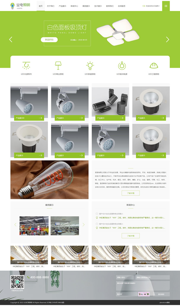 LED灯具照明pbootcms网站模板,pbootcms内核开发的一套企业网站模板,安装后和演示站一样,模板简洁大气,自适应结构。兼容电脑、平板、手机等移动设备。