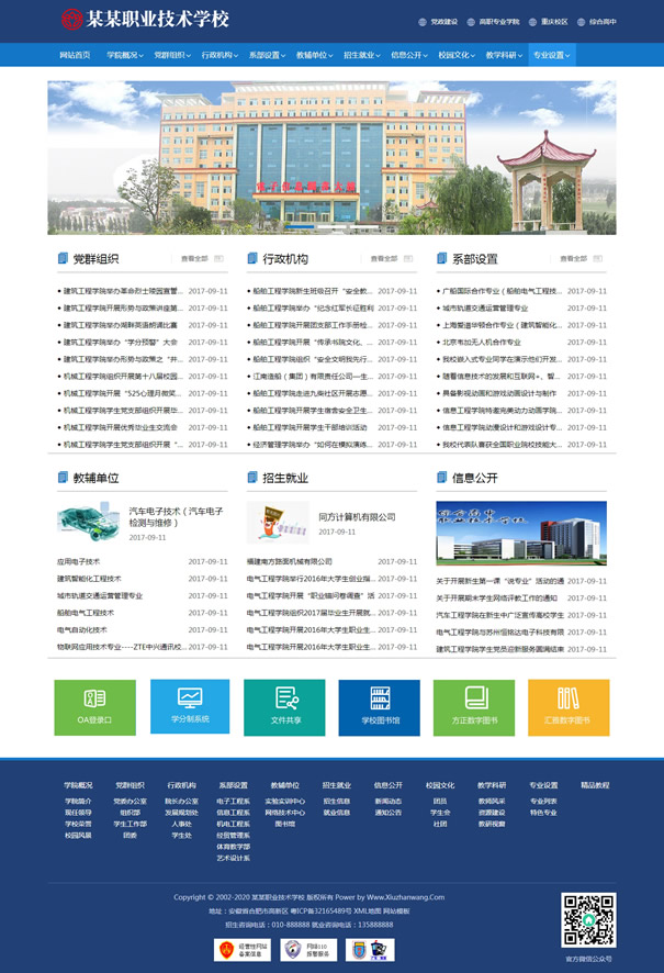 高等学院职业院校类Pbootcms网站模板(PC+WAP),pbootcms内核开发的一套企业网站模板,安装后和演示站一样,模板简洁大气,pbootcms内核PC+WAP结构。兼容电脑、平板、手机等移动设备。