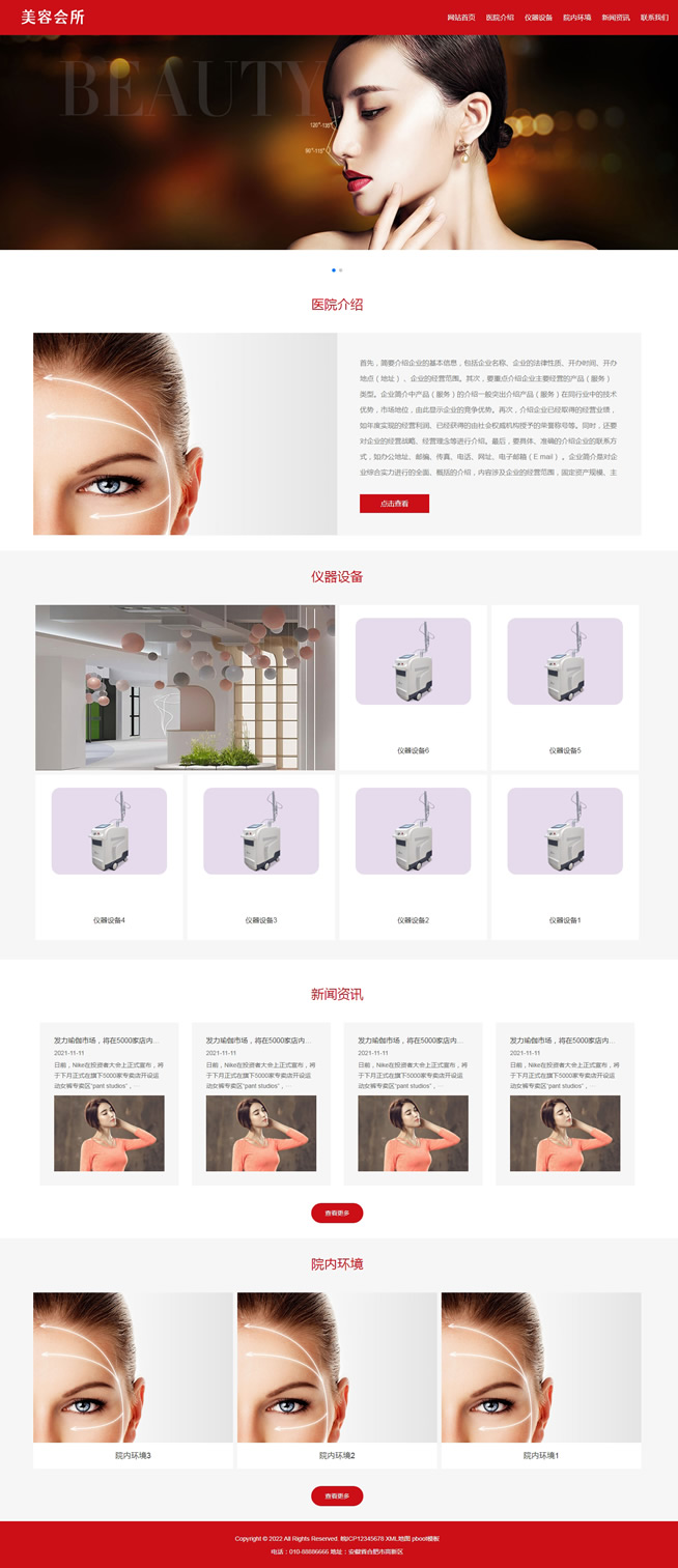 该模板适用美容会所‘等业务类站点,后台简单方便,本模板附带整站测试数据,搭建完和演示站一致!