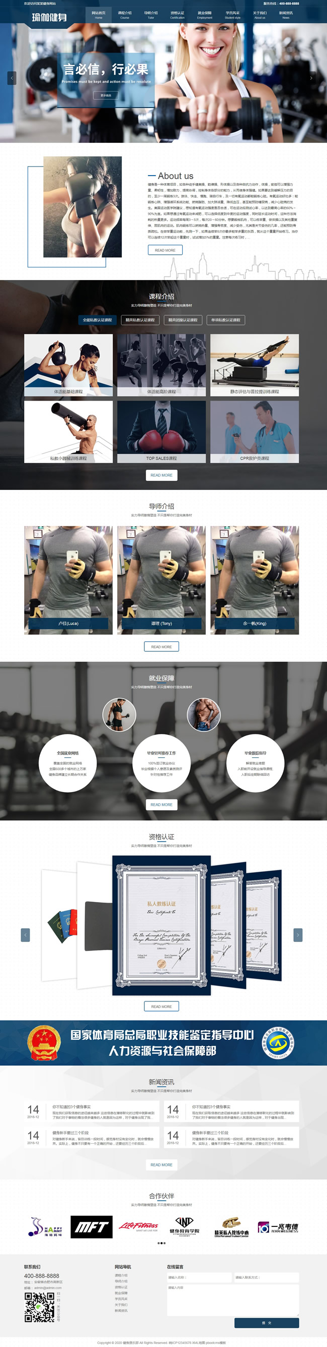 PbootCMS内核开发的自适应结构运动健身俱乐部网站模板,该模板适用于运动健身、健身瑜伽网站等企业;独立自定义标题/关键词/描述,PHP程序,安全、稳定、快速;手工书写DIV+CSS、代码精简无冗余。自适应结构,全球先进技术,高端视觉体验。附带测试数据、安装教程。