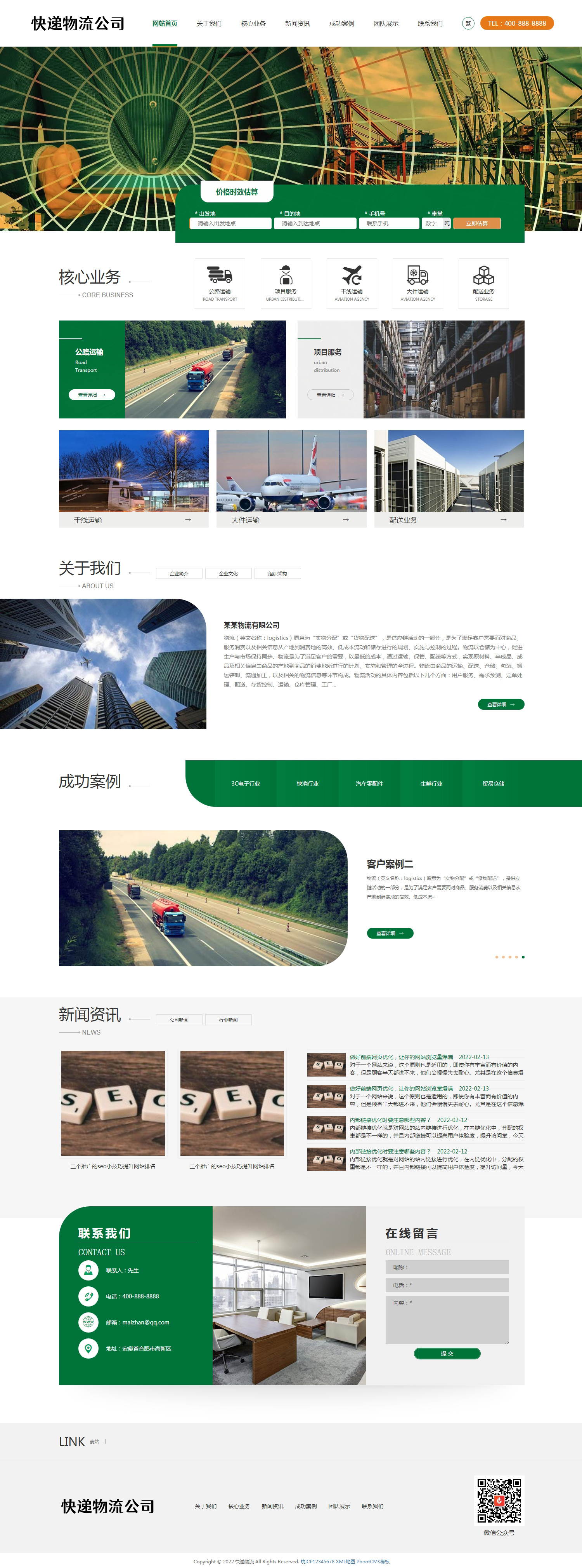 快递物流公司pbootcms自适应网站模板,pbootcms内核开发的一套企业网站模板,安装后和演示站一样,模板简洁大气,pbootcms内核自适应结构。兼容电脑、平板、手机等移动设备。