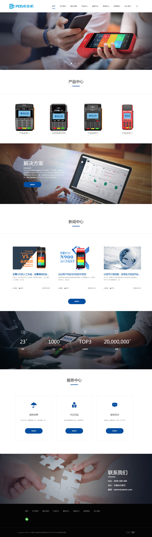 刷卡机POS机类自适应网站pbootcms模板,pbootcms内核开发的一套企业网站模板,安装后和演示站一样,模板简洁大气,pbootcms内核自适应结构。兼容电脑、平板、手机等移动设备。