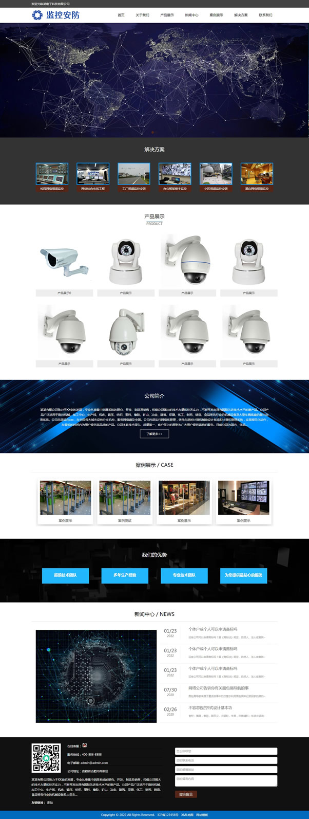 电子监控设备pbootcms网站模板,pbootcms内核开发的一套企业网站模板,安装后和演示站一样,模板简洁大气,pbootcms内核自适应结构。兼容电脑、平板、手机等移动设备。