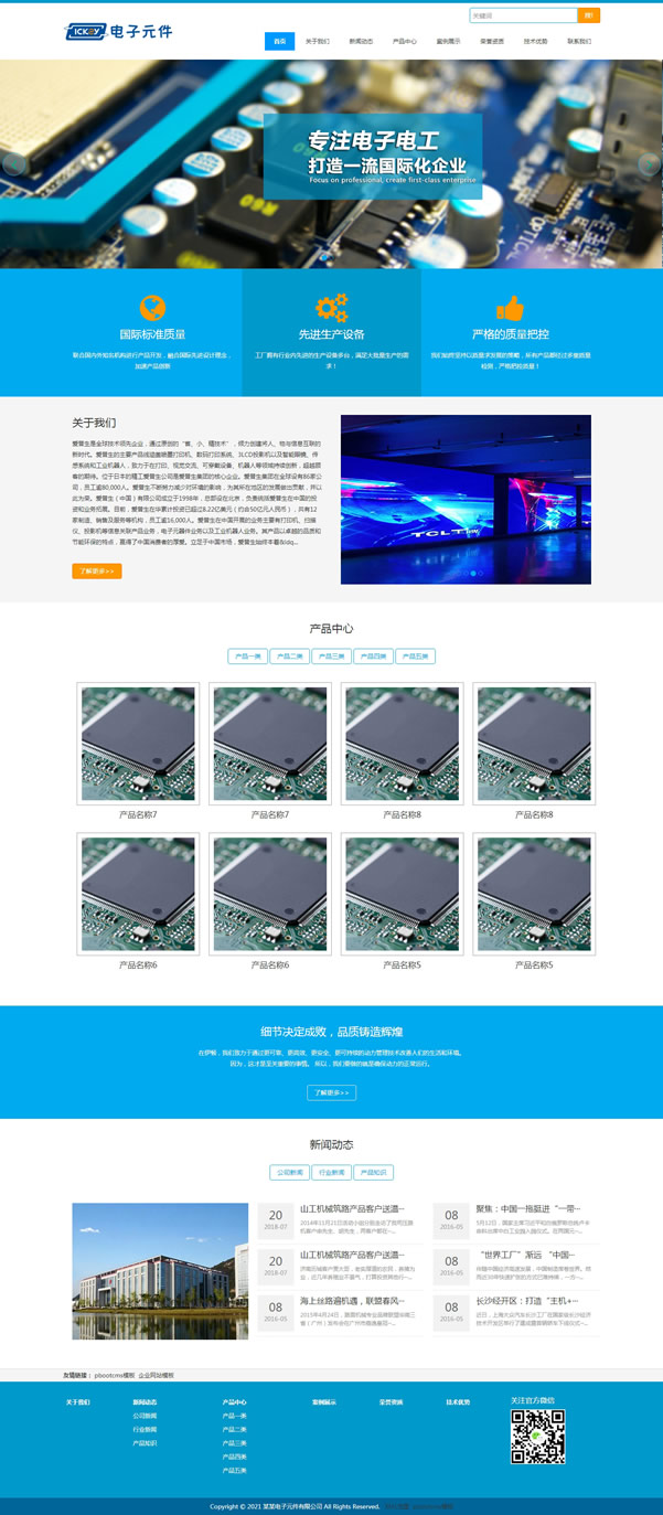 电子元件公司自适应网站源码